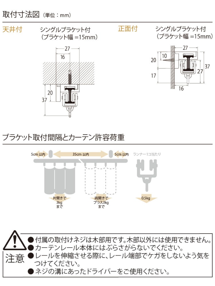 取付ネジは木部用です。木部以外には使用しないでください。