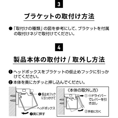 ワンタッチブラケット採用なのでブラケットと本体も簡単取付