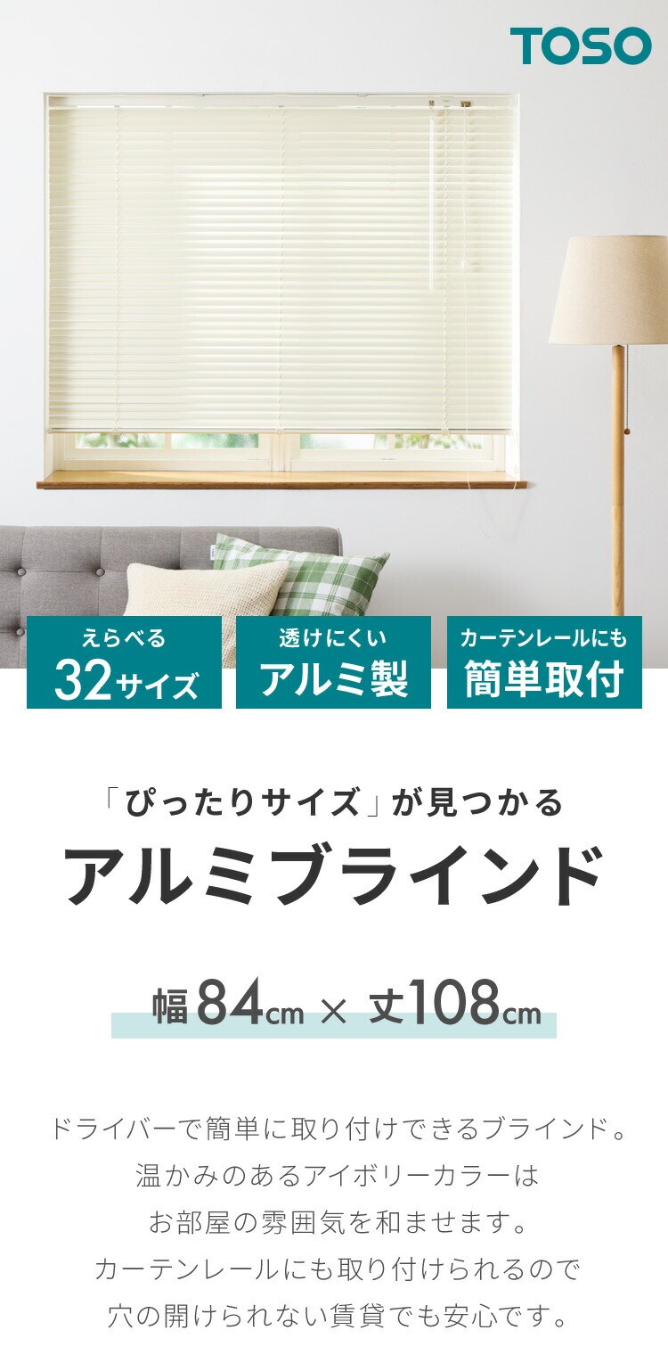ブラインド 幅84cm 丈108cm トーソー TOSO 取り付け簡単 アルミブラインド ブラインドカーテン 賃貸 浴室 カーテンレース 金具付き 遮熱 遮光 ブラインドスクリーン 日除け【送料無料】