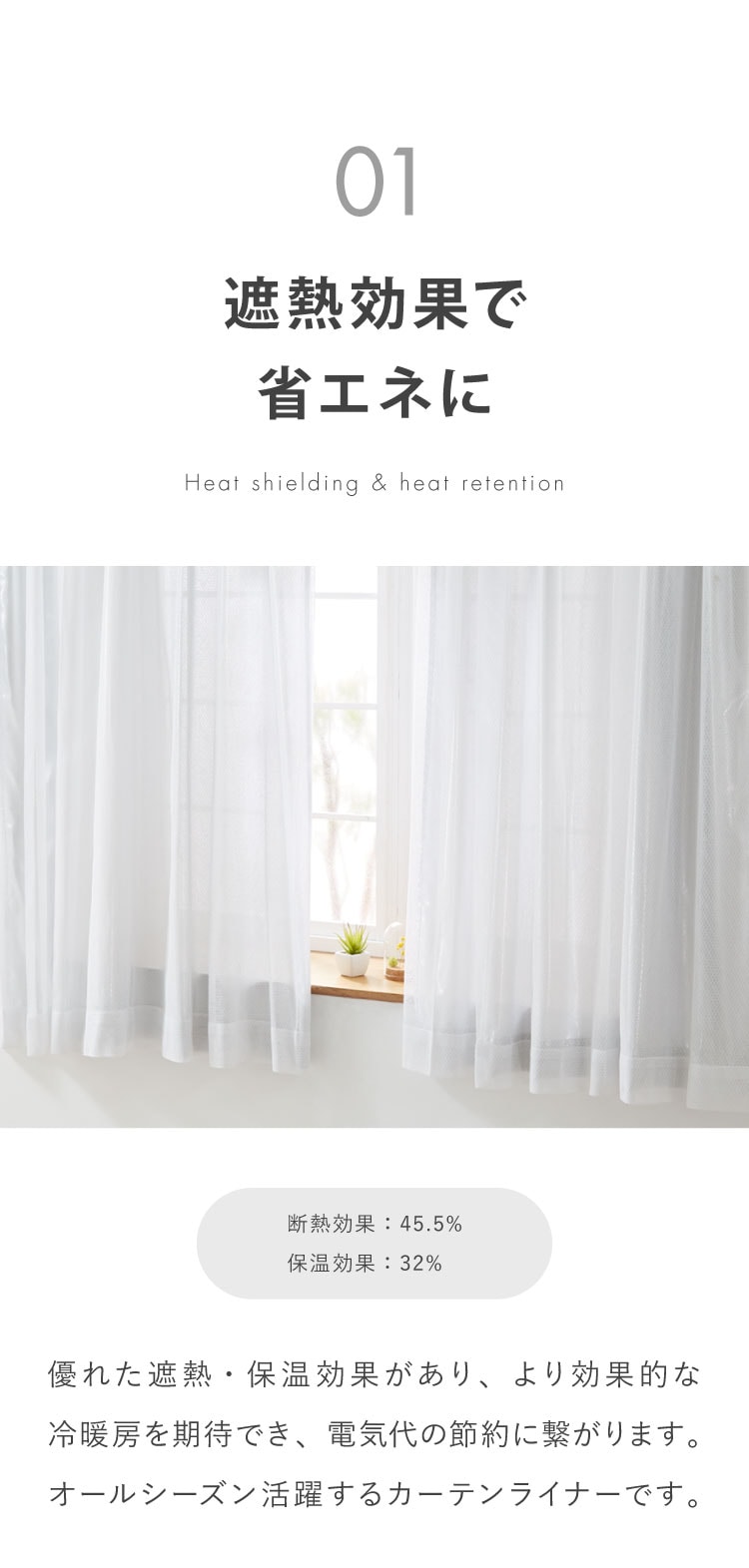 アルミ カーテンライナー 断熱45.5% UVカット84.7% 幅104cm 1枚 カーテンライナー 保温 遮熱 オールシーズン ECO 節電 後付け 取り付け簡単 裏地 暑さ対策 洗濯可能 エコ 無地 裏地カーテン【送料無料】