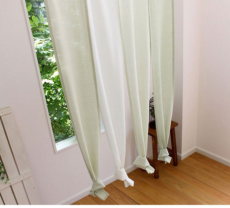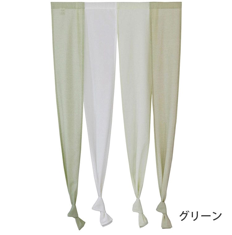 陽の光を程よく通す、透け感のある薄手の生地。裾を結んでアレンジすれば、違った雰囲気も楽しめます。結ぶ位置を変えてみても◎