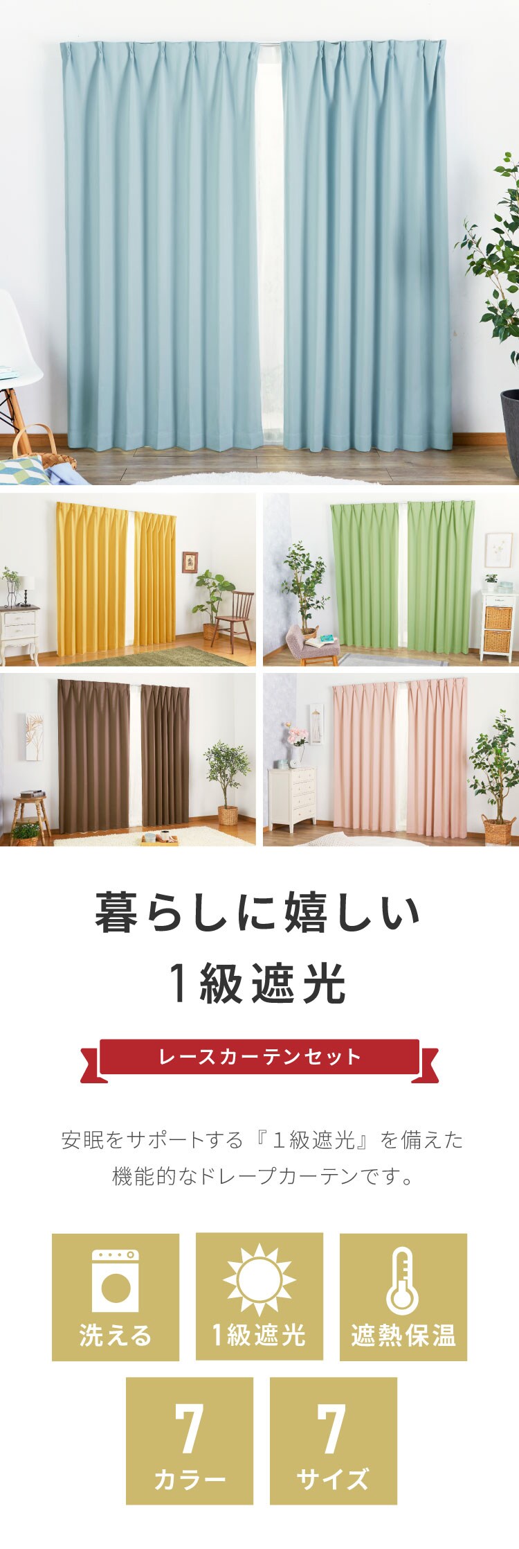 1級遮光カーテン 4枚セット 2枚セット 幅100 幅150 7サイズ カーテン レースカーテン付き 遮光 遮熱 UVカット 紫外線 保温 節電 省エネ 冷暖房効率 遮像 プライバシー 防犯【送料無料】