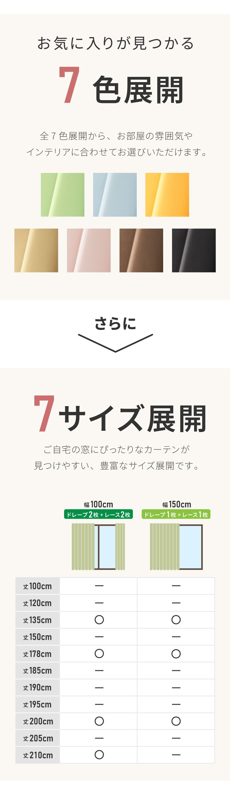 ※幅150cmはドレープカーテン1枚とレースカーテン1枚の2枚入りです。