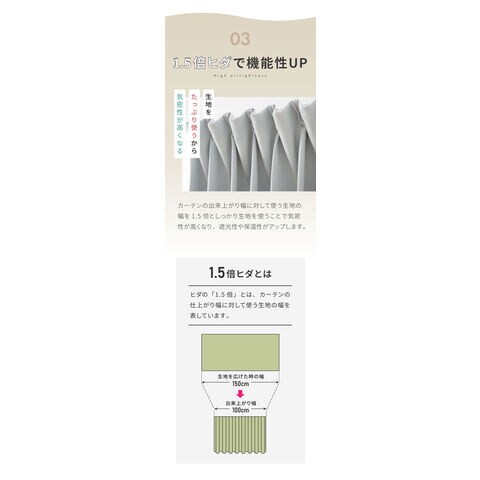 1級遮光、遮熱50%、保温30%(ドレープカーテン)