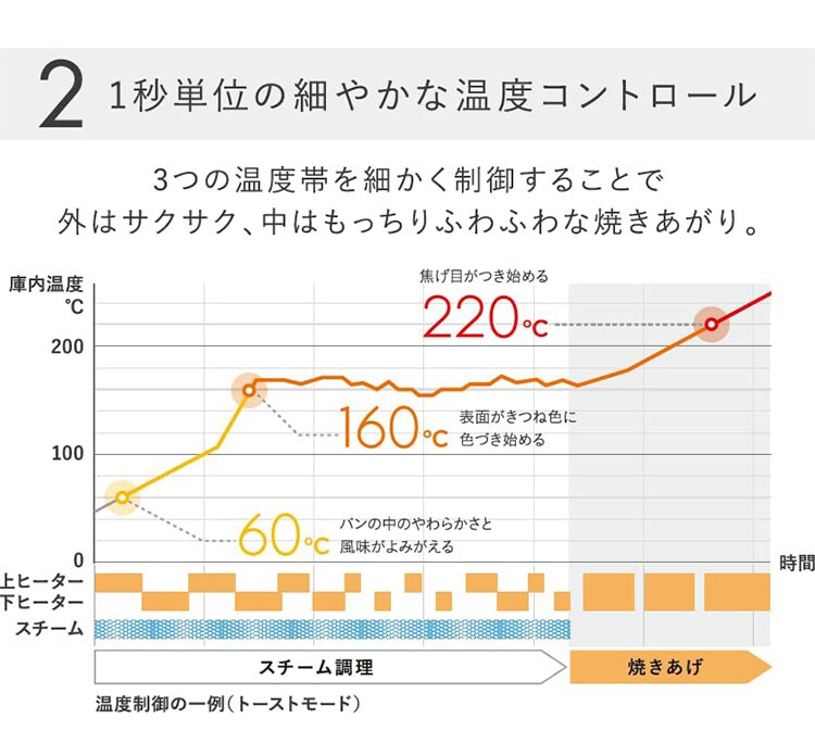 ●バルミューダだけのスチームテクノロジーとパンの特徴に合わせて調整された緻密な温度制御によって、誰でも簡単に、感動の味を実現。