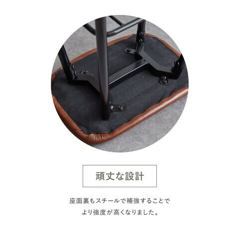 カフェのような落ち着きある空間を演出する、レザー特有のシワ感までが再現されているPUレザーシートに、それをすっきりと引き締めるスリムなブラックスチール脚部の組み合わせがセンスの良い空間を演出します。