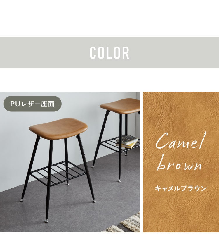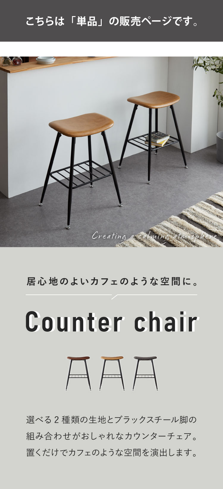 カフェのような落ち着きある空間を演出する、レザー特有のシワ感までが再現されているPUレザーシートに、それをすっきりと引き締めるスリムなブラックスチール脚部の組み合わせがセンスの良い空間を演出します。