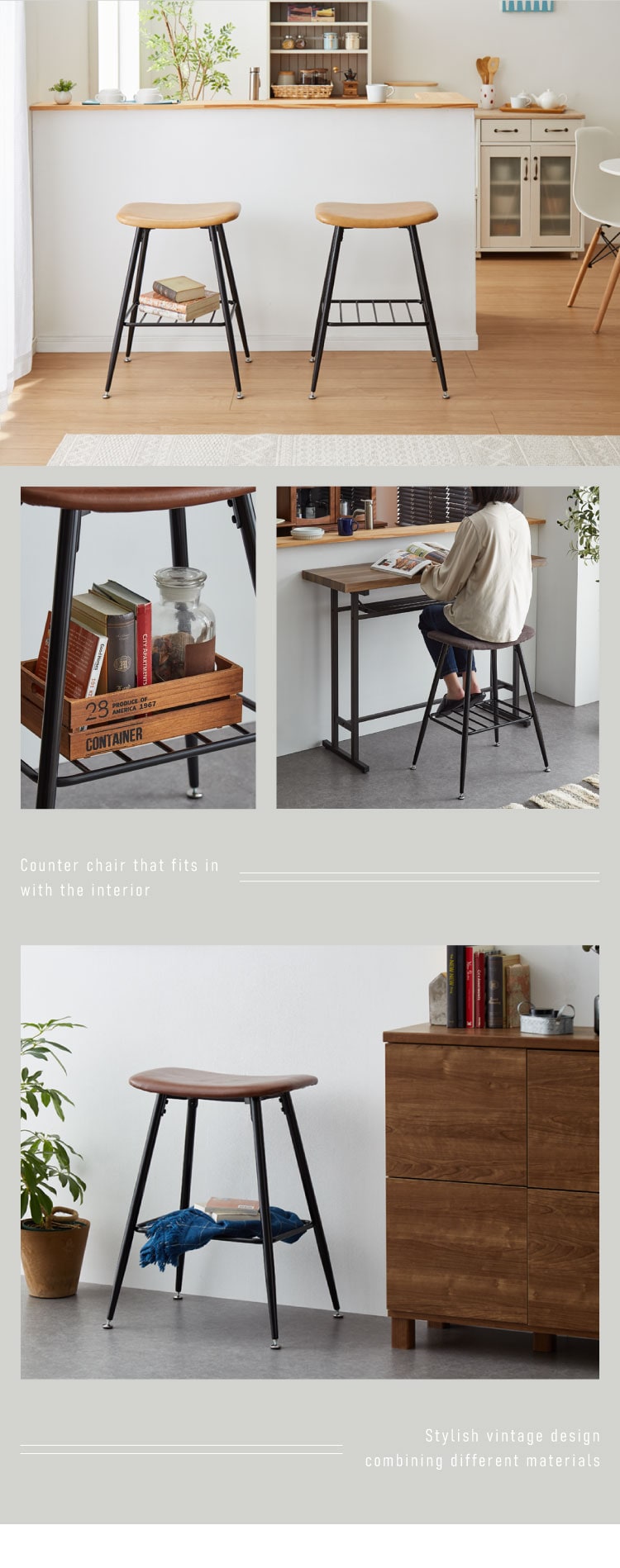 深みある表情のヴィンテージデザインスツールで、雰囲気漂うカフェのような空間をご自宅に。