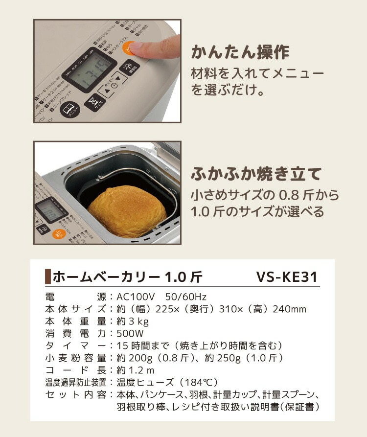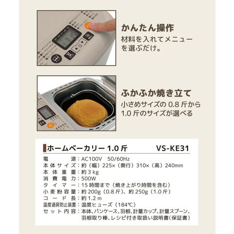 ベルソス ホームベーカリー 1.0斤 米粉 餅 ヨーグルト VS-KE32 パン ベーカリー 食パン フランスパン パン生地 こね 家電 キッチン 料理 レシピ ごはん 一人暮らし 米粉 おしゃれ【送料無料】