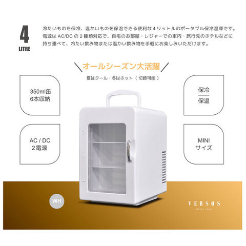 4L 冷温庫 冷蔵庫 保冷庫 ポータブル ミニ ペルチェ 小型 ポータブル冷蔵庫 車載冷蔵庫 持ち運び 卓上 小さい 車中泊 社内 キャンプ アウトドア 保冷 保温 保温子 ホワイト ベルソス VS-CW004【送料無料】