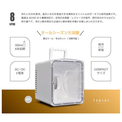 8L 冷温庫 冷蔵庫 保冷庫 ポータブル ミニ ペルチェ 小型 ポータブル冷蔵庫 車載冷蔵庫 持ち運び 卓上 小さい 車中泊 社内 キャンプ アウトドア 保冷 保温 保温子 ホワイト ベルソス VS-CW008【送料無料】