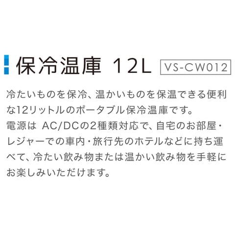 12L 冷温庫 冷蔵庫 保冷庫 ポータブル ミニ ペルチェ 小型 ポータブル冷蔵庫 車載冷蔵庫 持ち運び 卓上 小さい 車中泊 社内 キャンプ アウトドア 保冷 保温 保温子 ベルソス VS-CW012【送料無料】