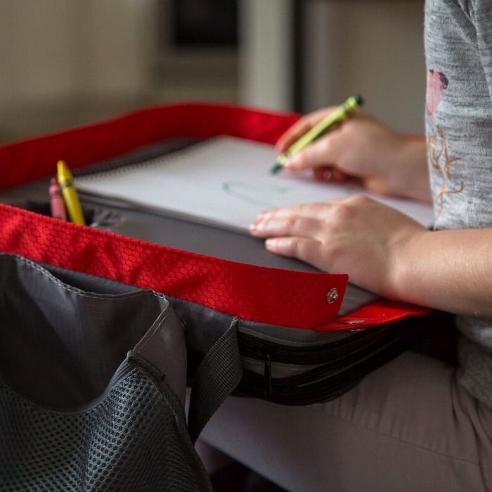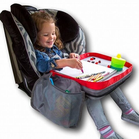 シートベルトで固定された子どもたちは足元に落ちたものを拾うこともできないまま、残念な時間がすぎていきます。パパやママも、ものが落ちるたびに車を停めて拾ってあげるわけにもいきません。トラベルラップトレイは、そんなストレスから開放してくれる便利なアイテムです。