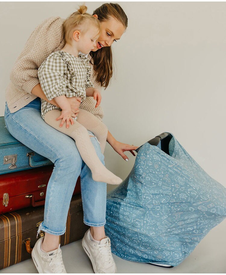 ●カートのベビーチェアに被せればカートに付着したバイキンからベビーを守ってくれます。買い物の度にカートを拭くよりずっと楽チンです。