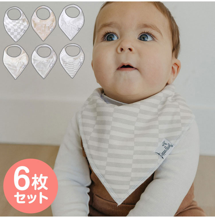 6枚セットになったバンダナビブは出産祝いにぴったりです。