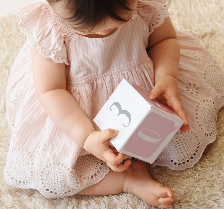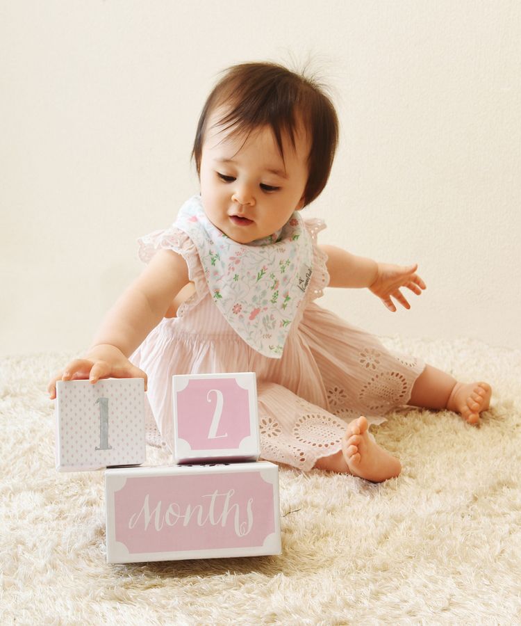 特に月齢が小さなうちはお子様だけが写った写真では月齢の判別ができにくいもの。そんな時にマイルストーンエイジブロックがあれば、成長を写真に残せるので安心です。