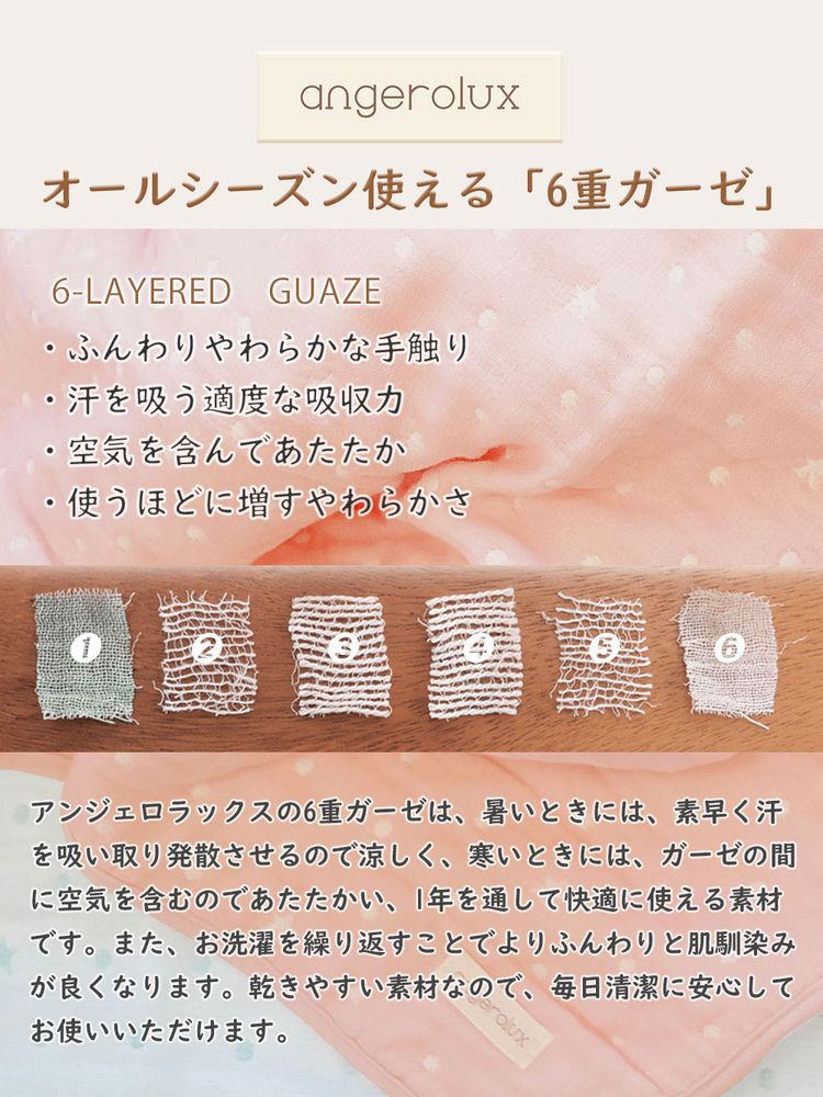 angerolux アンジェロラックス 6重ガーゼケット S(50×70cm) ペールピンク CON-ANG-BLS057
