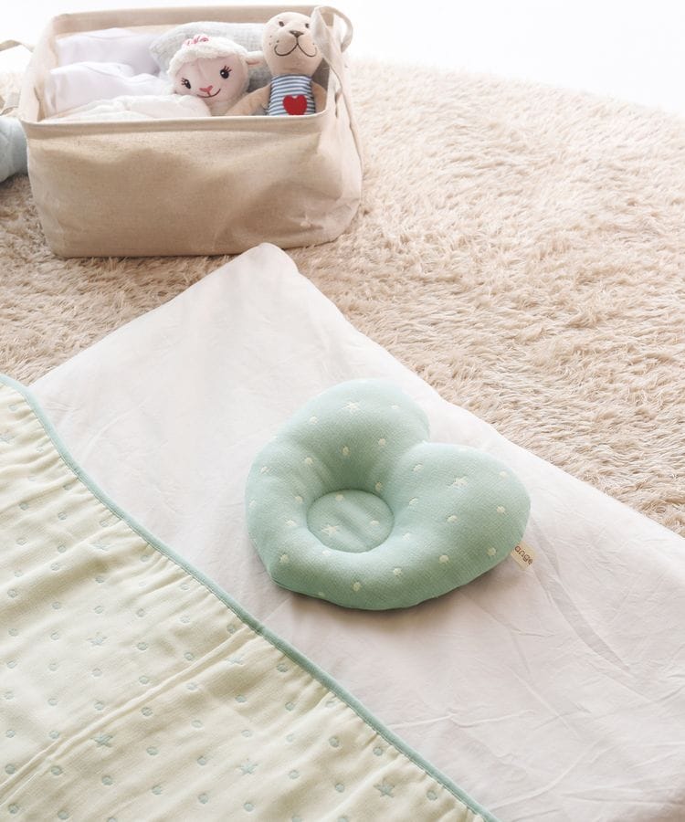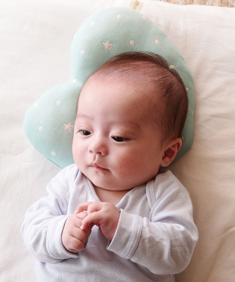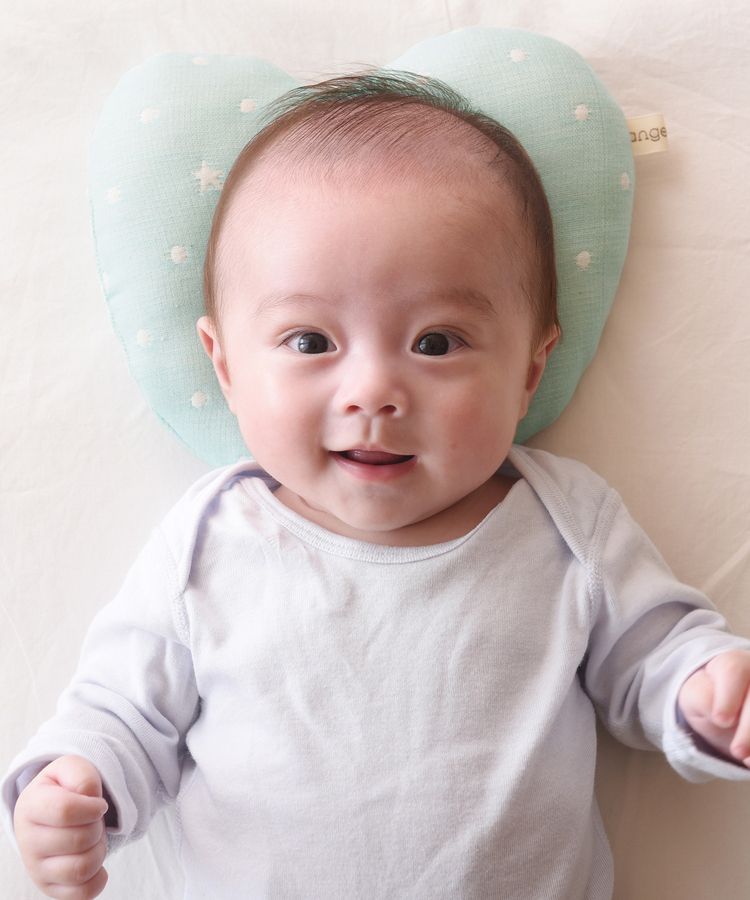 赤ちゃんの頭がハートに包まれているような可愛いデザインです。中央のくぼみが赤ちゃんのやわらかい頭を優しく守ります。また、いつも同じ方向を向いて寝てしまう向き癖や絶壁、寝はげなど赤ちゃん期特有の頭の悩みの対策にも役立ちます。