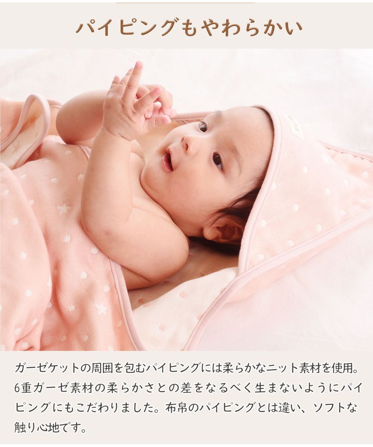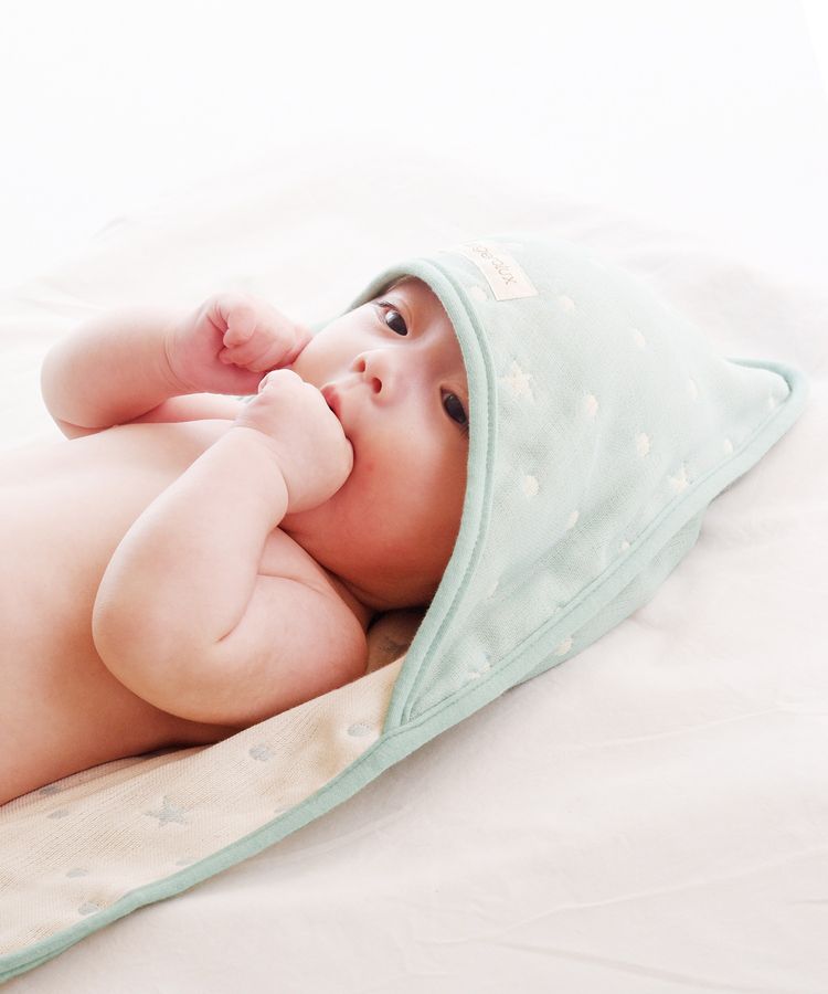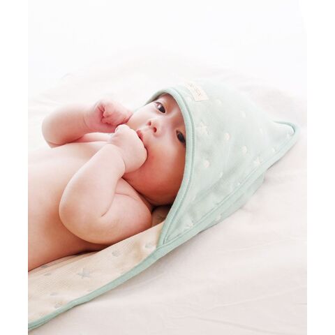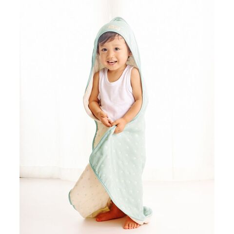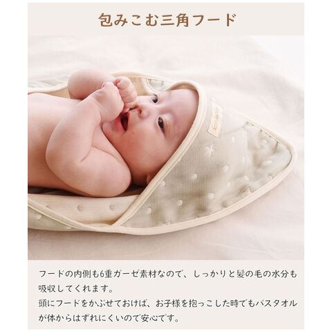 大判サイズ(約)80×80cmでお風呂あがりの赤ちゃんの体をすっぽりと包む