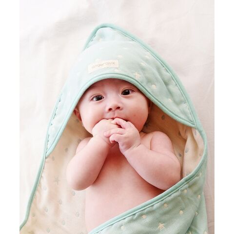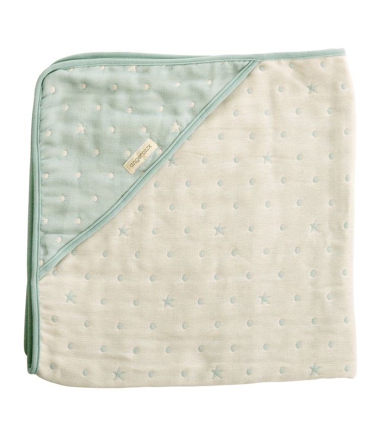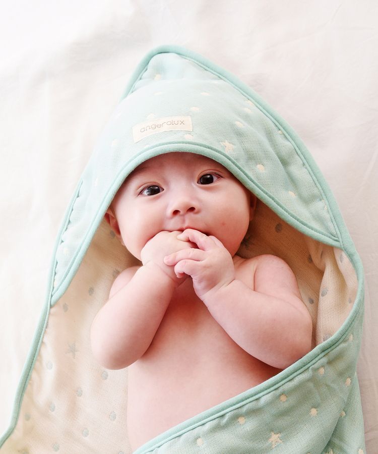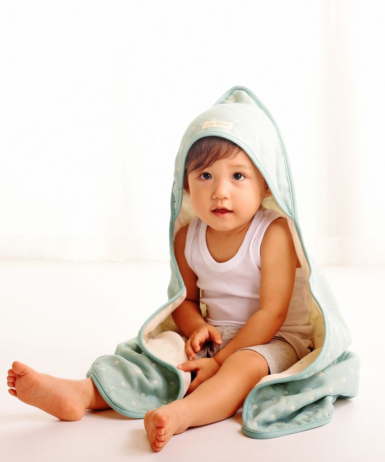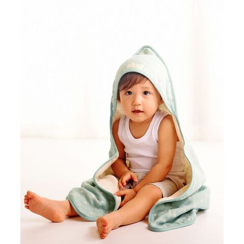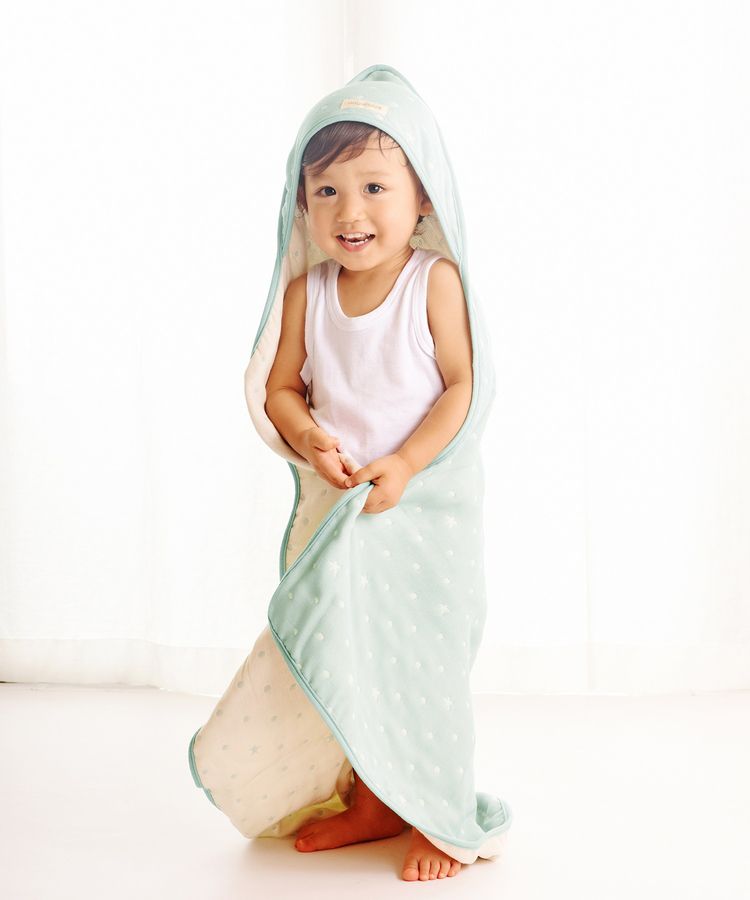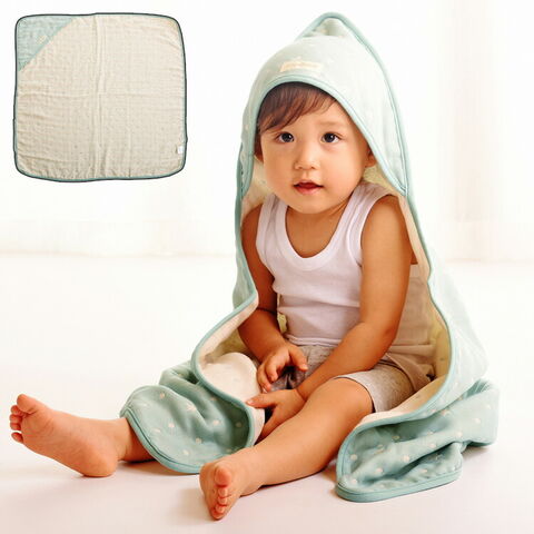 angerolux アンジェロラックス 6重ガーゼ フード付き バスタオル ミントブルー 1枚 CON-ANG-HT149【送料無料】