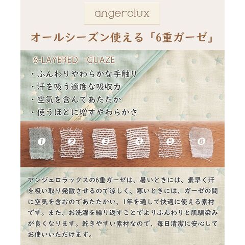 暑いときには、素早く汗を吸い取り発散させるので涼しく、寒いときには、ガーゼの間に空気を含むのであたたかい、1年を通して快適に使える素材です。乾きやすい素材なので、毎日清潔に安心してお使いいただけます。