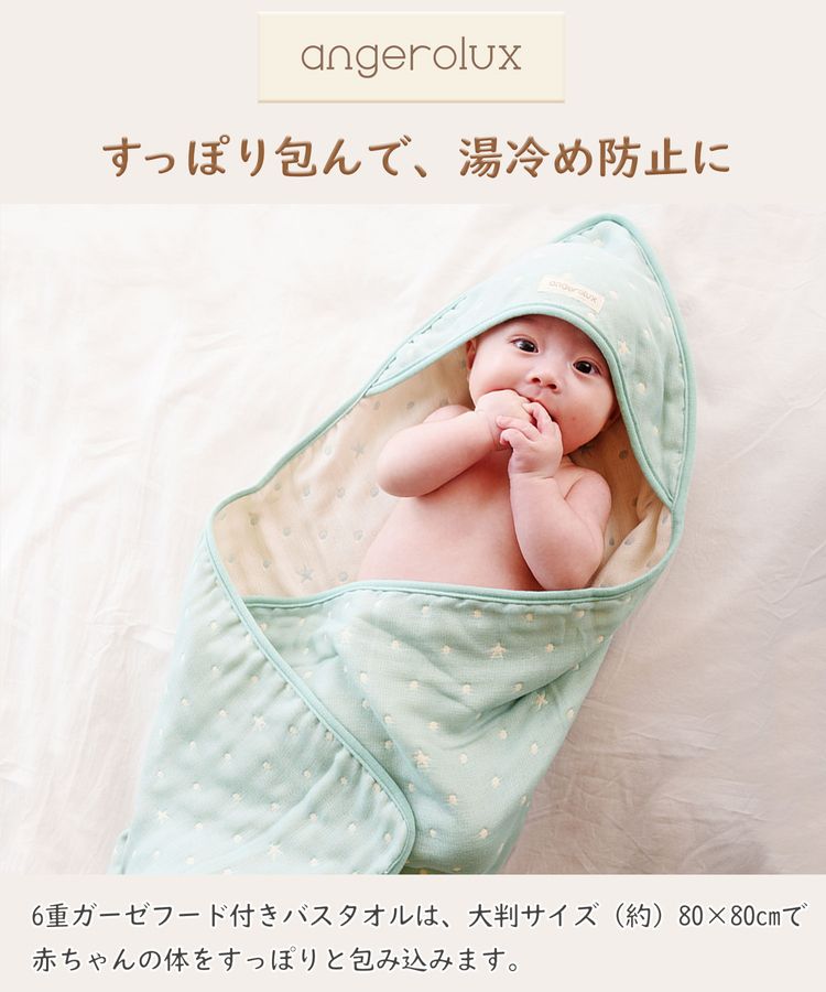angerolux アンジェロラックス 6重ガーゼ フード付き バスタオル モスグレー 1枚 CON-ANG-HT163【送料無料】