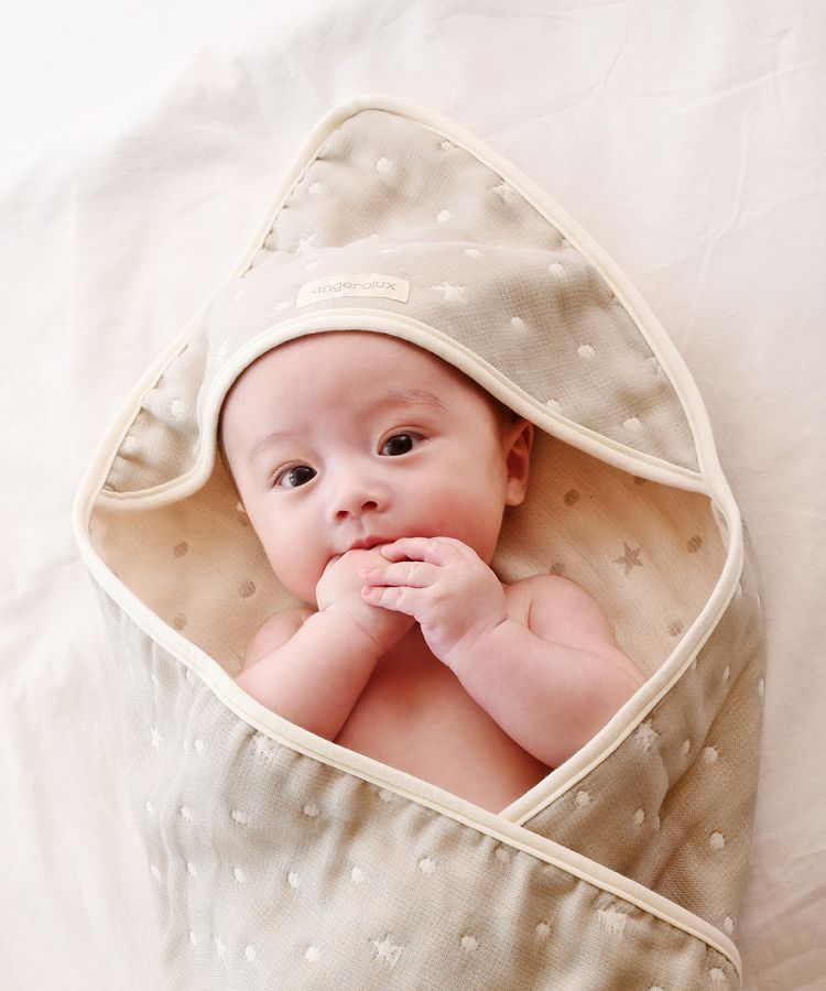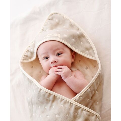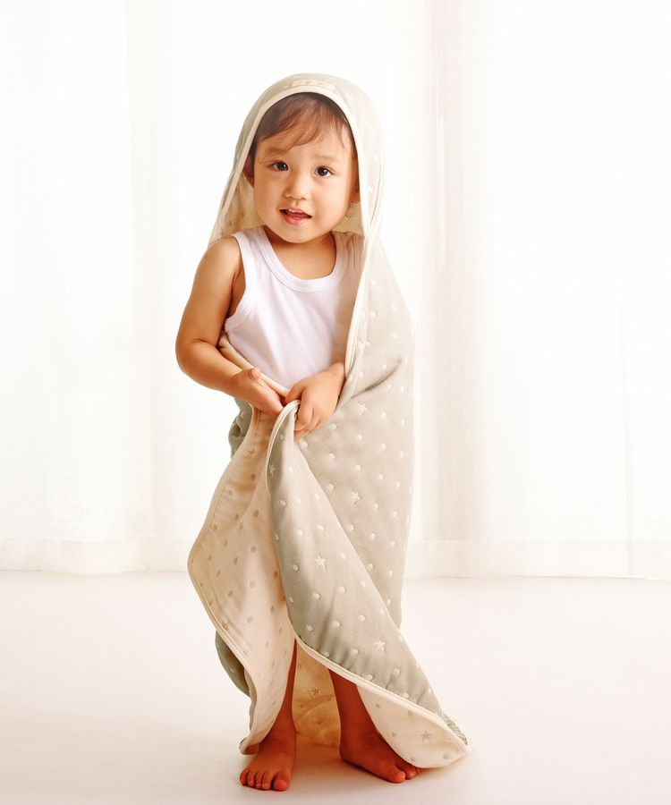 大判サイズ(約)80×80cmでお風呂あがりの赤ちゃんの体をすっぽりと包む