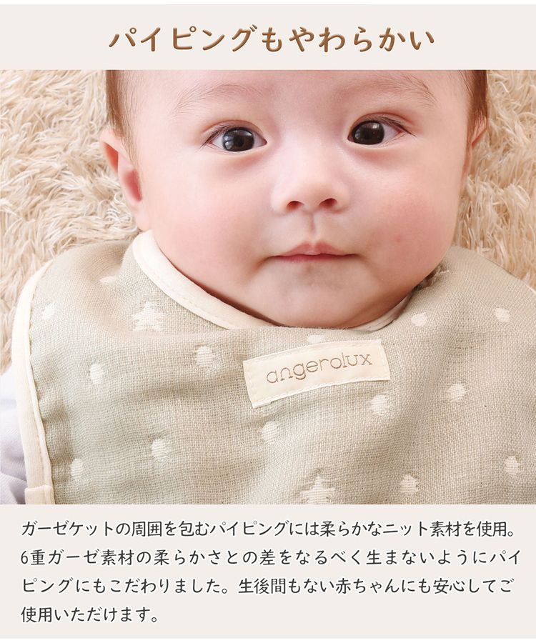 ●お子様の成長をパパやママと同じ目線で見守りたい、そんな想いを持ったブランド「angerolux(アンジェロラックス」のふんわりと軽いつけ心地「6重ガーゼスタイ」が登場しました。