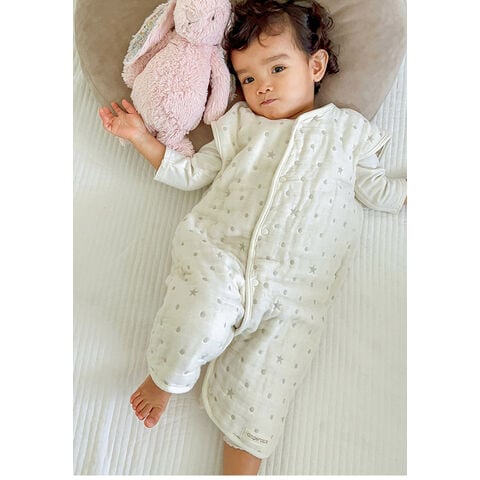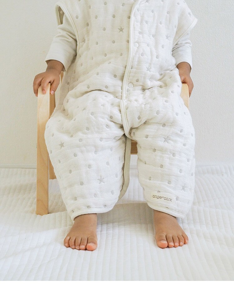 ふんわり6重ガーゼで包み込む、裾がめくれないスリーパー