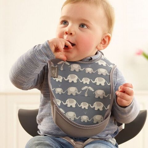 吸水性と防水性を兼ねそろえたネオプレン素材のおかげで、食後のお片付けやお洗濯、お手入れがとっても簡単になりました。