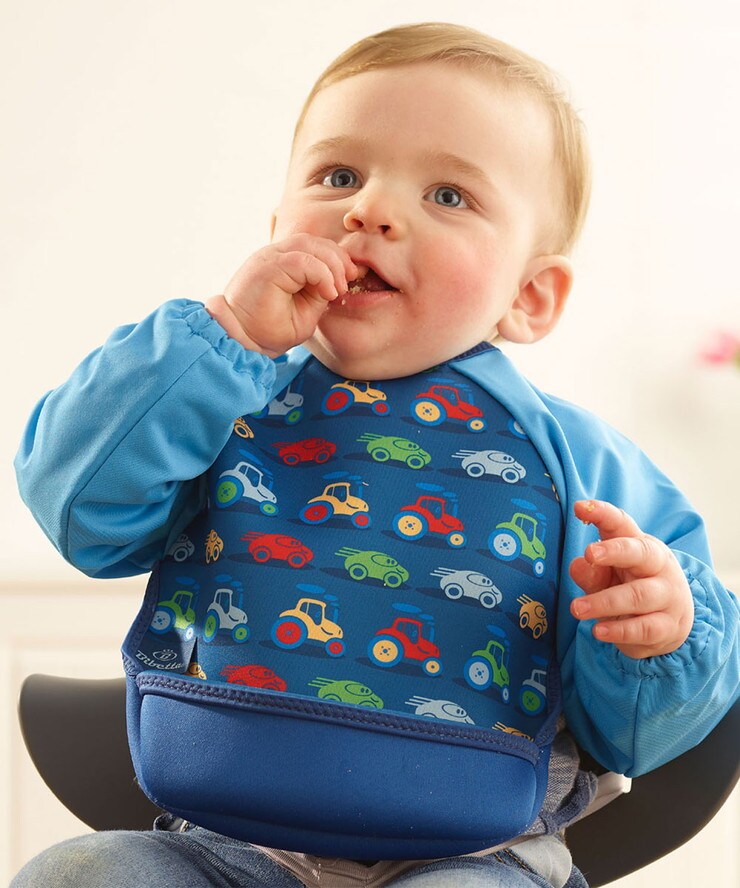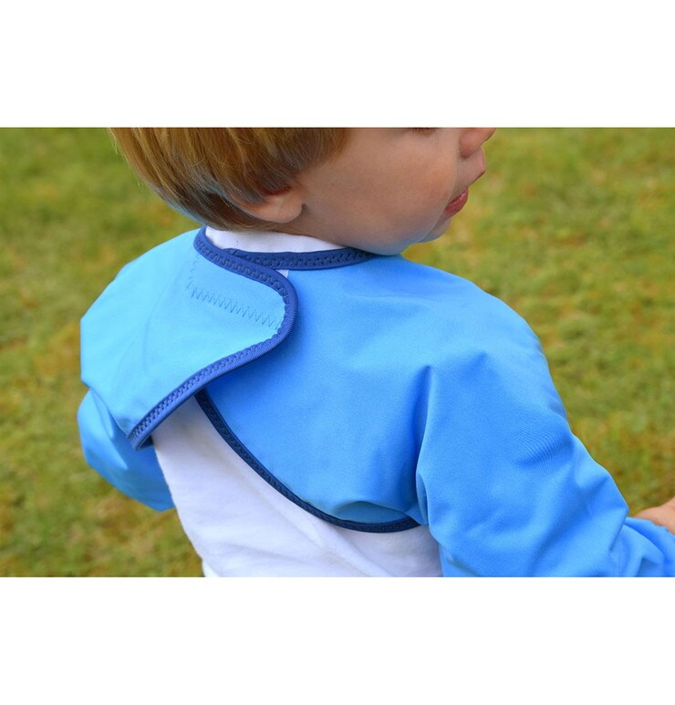 ●ウェットスーツ素材と防水素材でできた、とっても軽くて軟らかい袖付きのベビー用エプロンです。