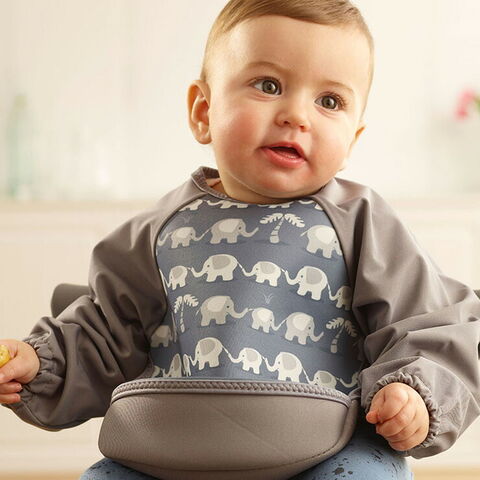 ●ウェットスーツ素材と防水素材でできた、とっても軽くて軟らかい袖付きのベビー用エプロンです。