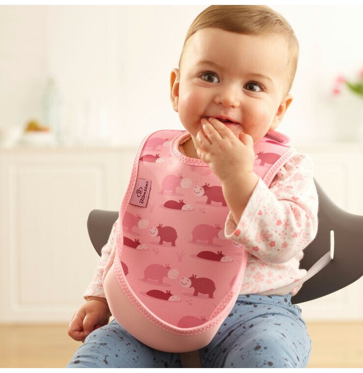 吸水性と防水性を兼ねそろえたネオプレン素材のおかげで、食後のお片付けやお洗濯、お手入れがとっても簡単になりました。