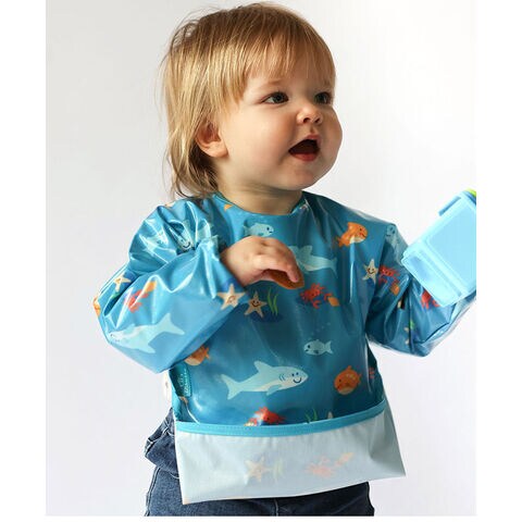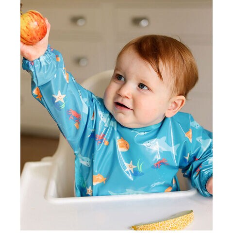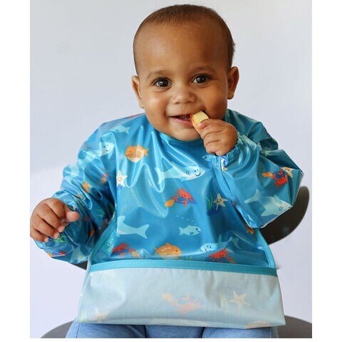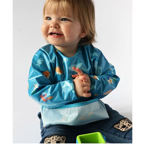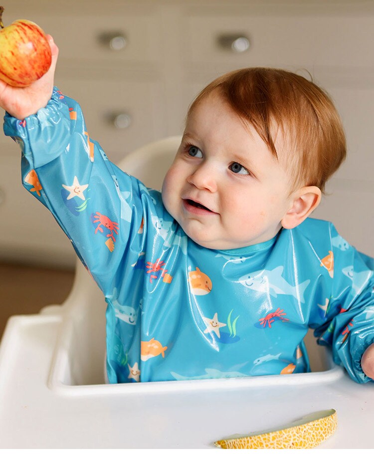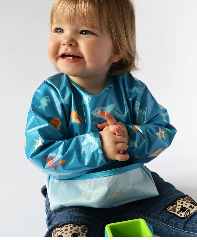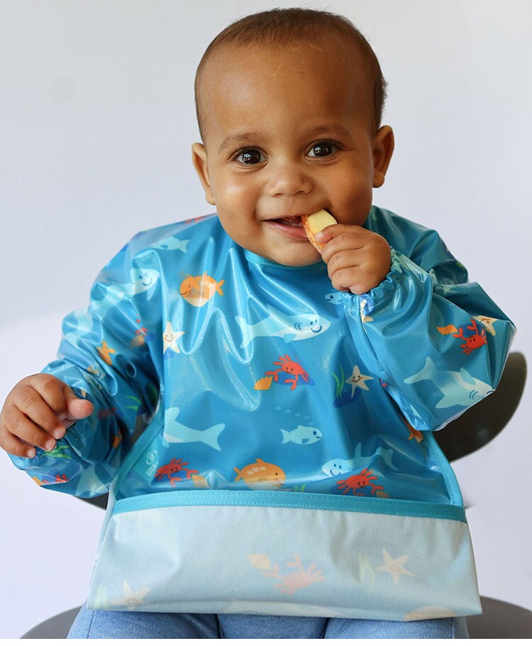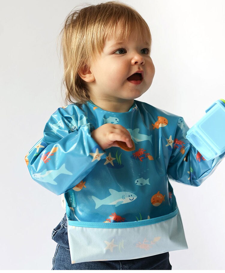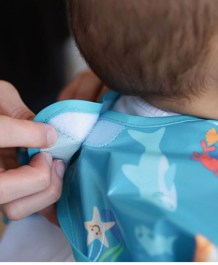 ビベッタ Bibetta スリーブ付き ワイプイージー ビブ ターコイズ シークリーチャー ベビー キッズ エプロン