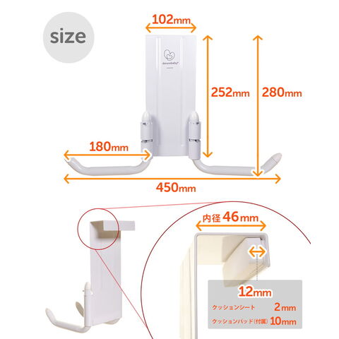 狭い玄関でベビーカーを置くスペースがなくてお困りの方、お掃除の度にベビーカーを移動させる手間から解放されたい方にピッタリなドアハンガーです。