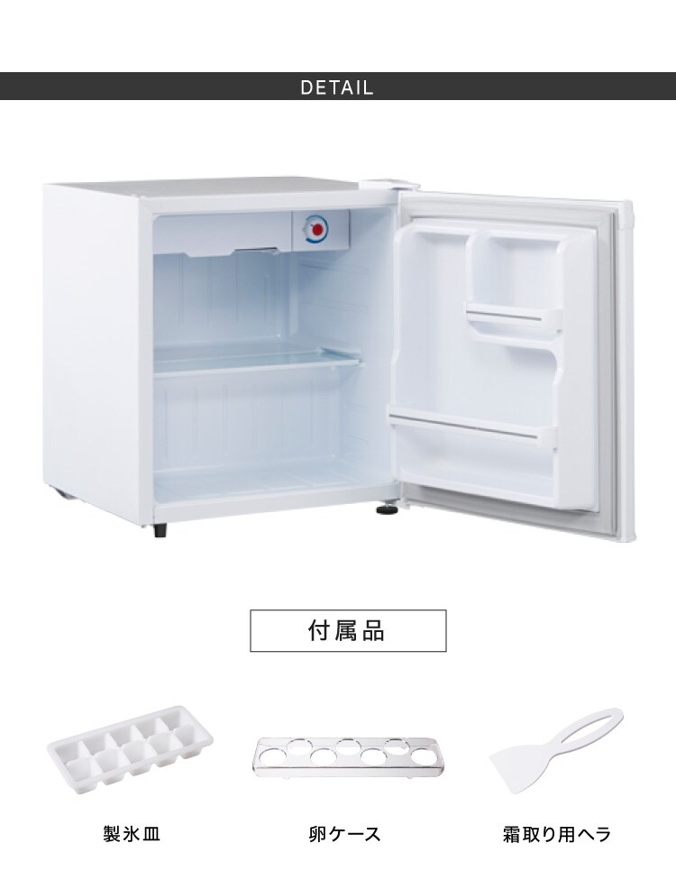 付属品:製氷皿、霜取りヘラ、露受け皿、卵ケース、取扱説明書(保証書付き)