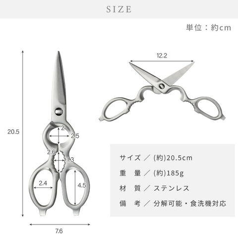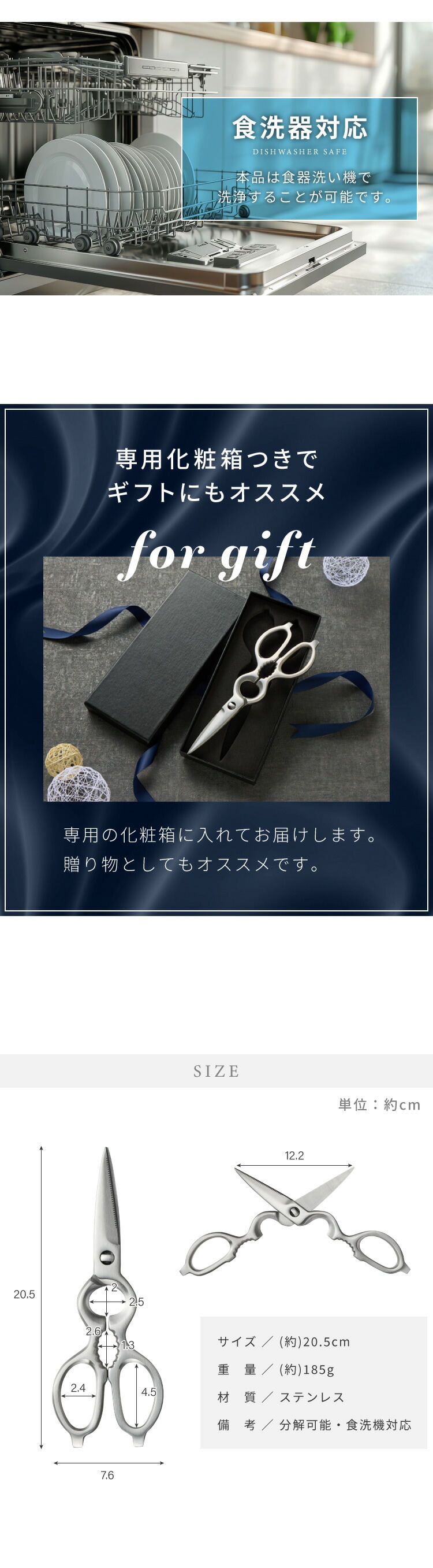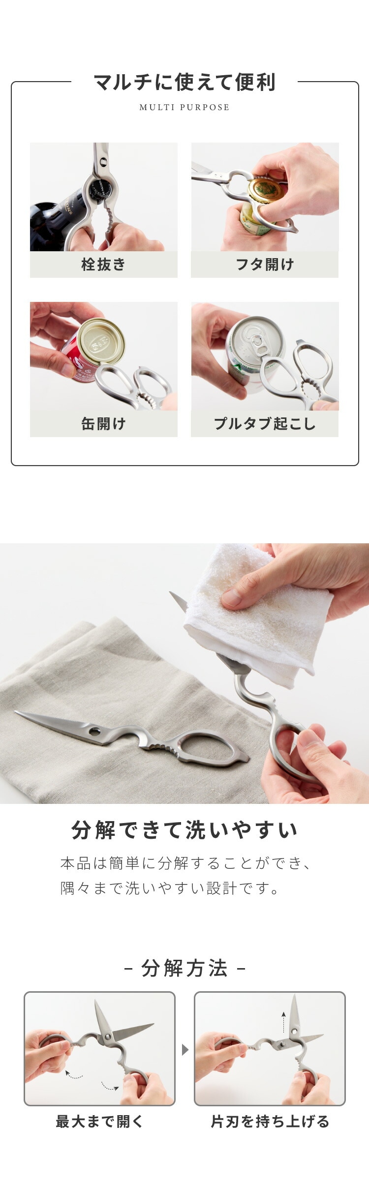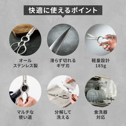 キッチンバサミ 分解 食洗機対応 オールステンレス セパレート 取り外し式 洗える まな板いらず ギザ刃 キッチンばさみ キッチンはさみ キッチンハサミ キッチン鋏 分解式 洗浄【メール便配送】 【送料無料】