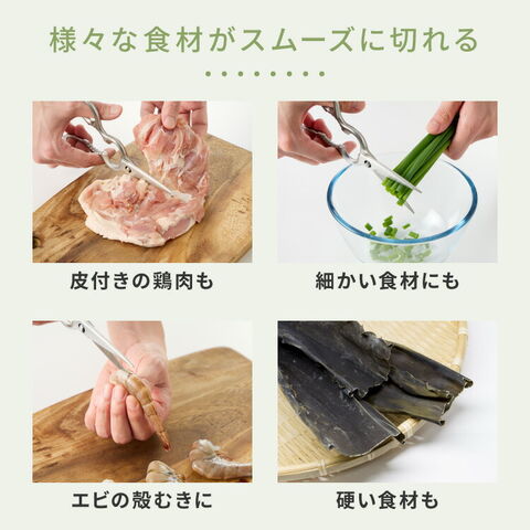 ■皮付きの鶏肉や魚の下処理でも。硬い食材、柔らかい食材などもしっかりと切れます。