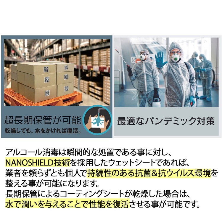 Nanoshield TM の技術により開発されたウェットシートです。