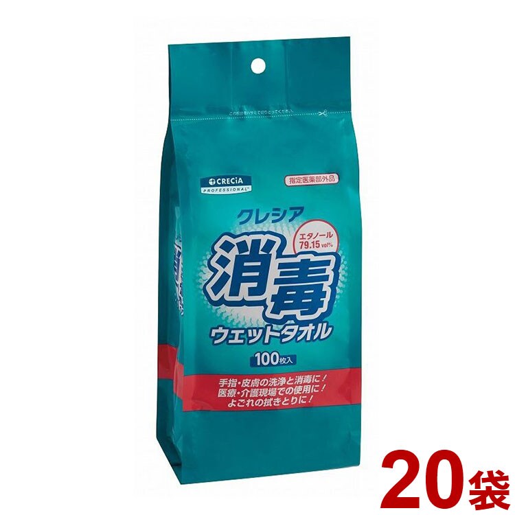 日本製紙クレシア クレシア 消毒ウェットタオル詰め替え100枚入 ケース(1ケース/20袋) 64125 955698 1008【送料無料】