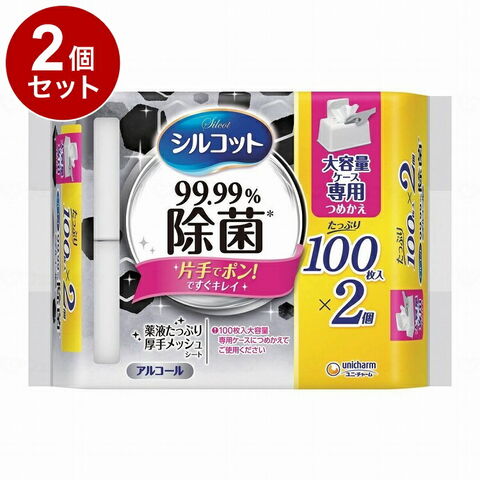 【単品2個セット】 ユニ チャーム シルコット99.9%除菌WT詰替大容量100枚×2 ケース【送料無料】