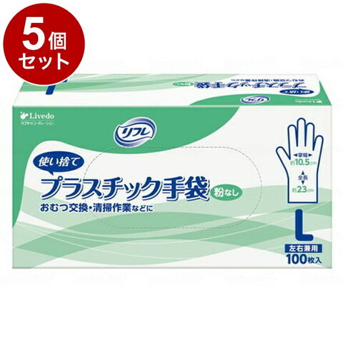 【単品5個セット】 リブドゥ リフレ プラスチック手袋 粉なし 箱 L 90378【送料無料】