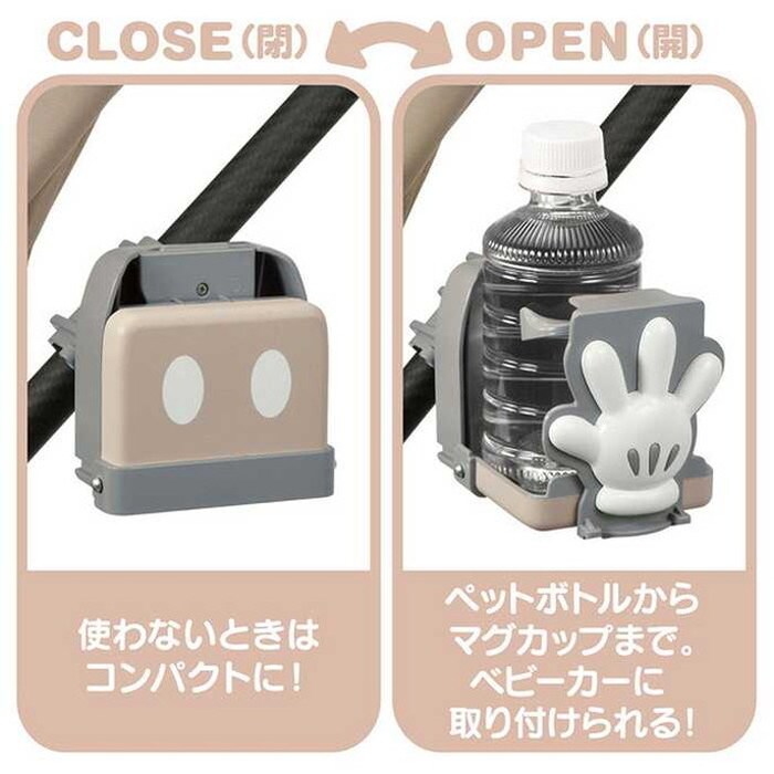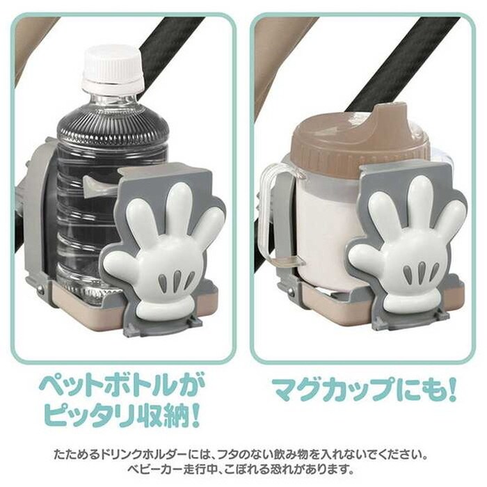 ベビーカーでのペットボトルやマグカップ収納に!ミッキーのたためるドリンクホルダー!