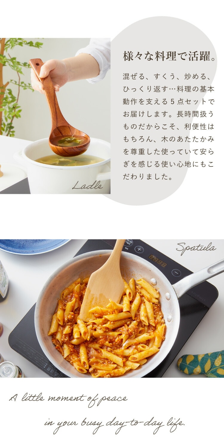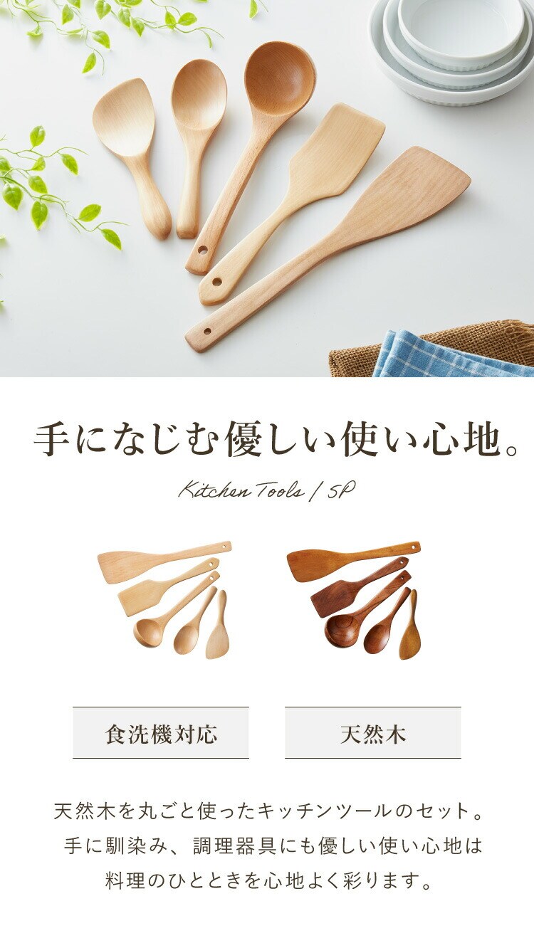 【食洗機対応】 木製 キッチンツール 5点セット 天然木 おしゃれ 洗える 炒めへら ヘラ フライ返し しゃもじ お玉 取り分けスプーン ターナー セット キッチン雑貨 調理器具 ナチュラル 白木 漆塗り【送料無料】