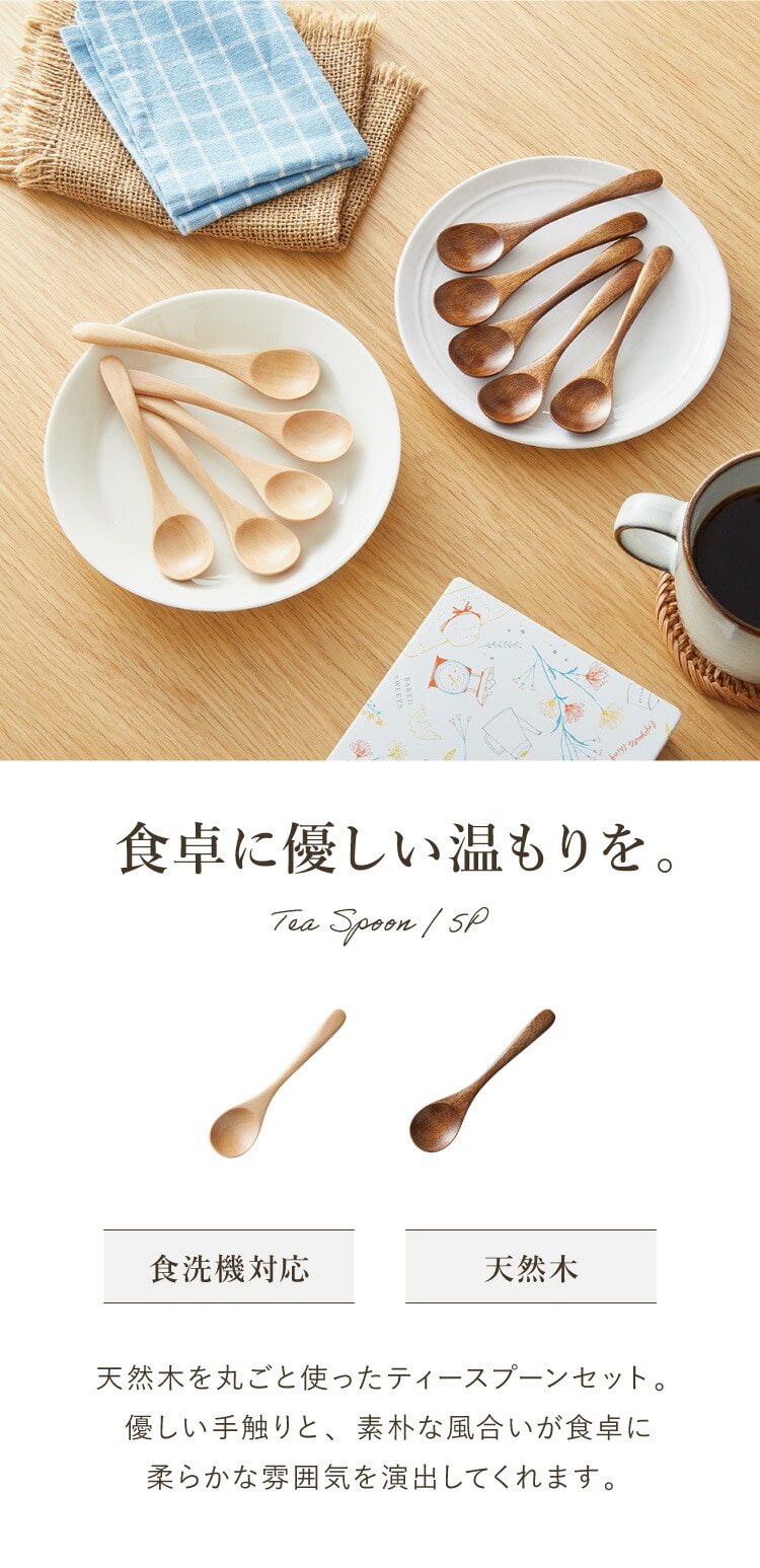天然木のティースプーン 5本セット。