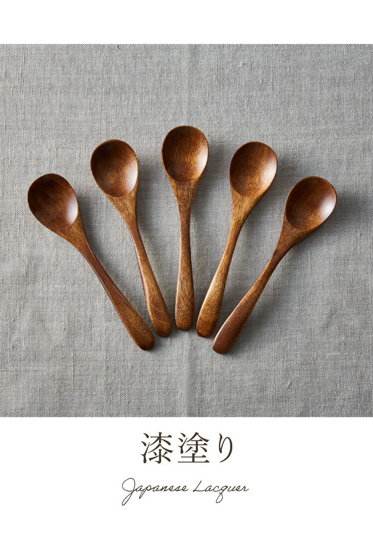 【食洗機対応】 ティースプーン 5本セット 12.5cm 木製 漆塗り 白木 天然木 コーヒースプーン デザートスプーン おしゃれ カフェ風 ナチュラル ブラウン カトラリー 漆器 軽い 軽量 洗える 北欧【メール便配送】 【送料無料】