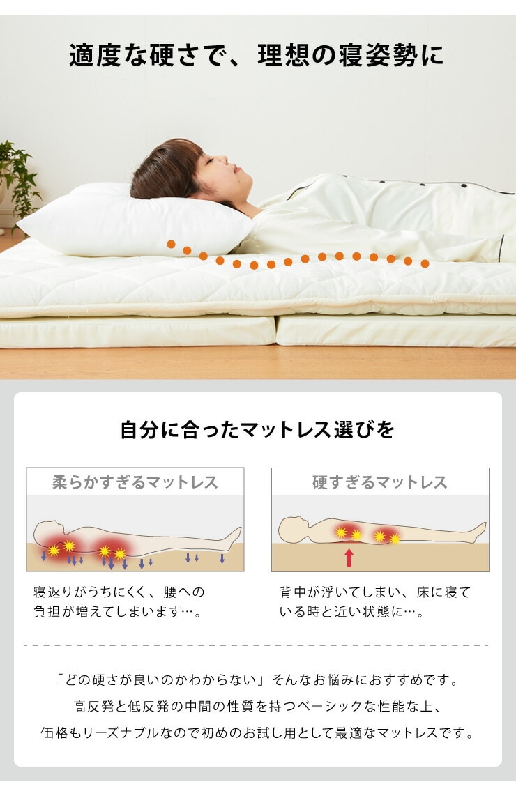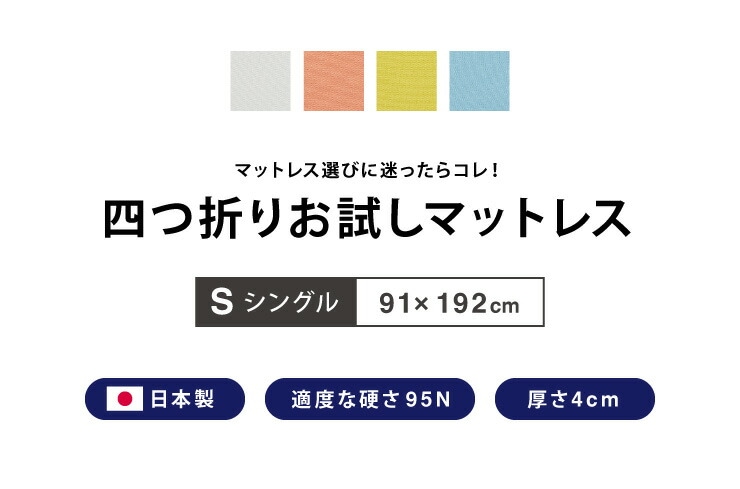 日本製 四つ折り お試しマットレス シングル 厚さ4cm 90N マットレス 中反発 ウレタン おりたたみ 腰痛 折りたたみマットレス かたさふつう 【送料無料】