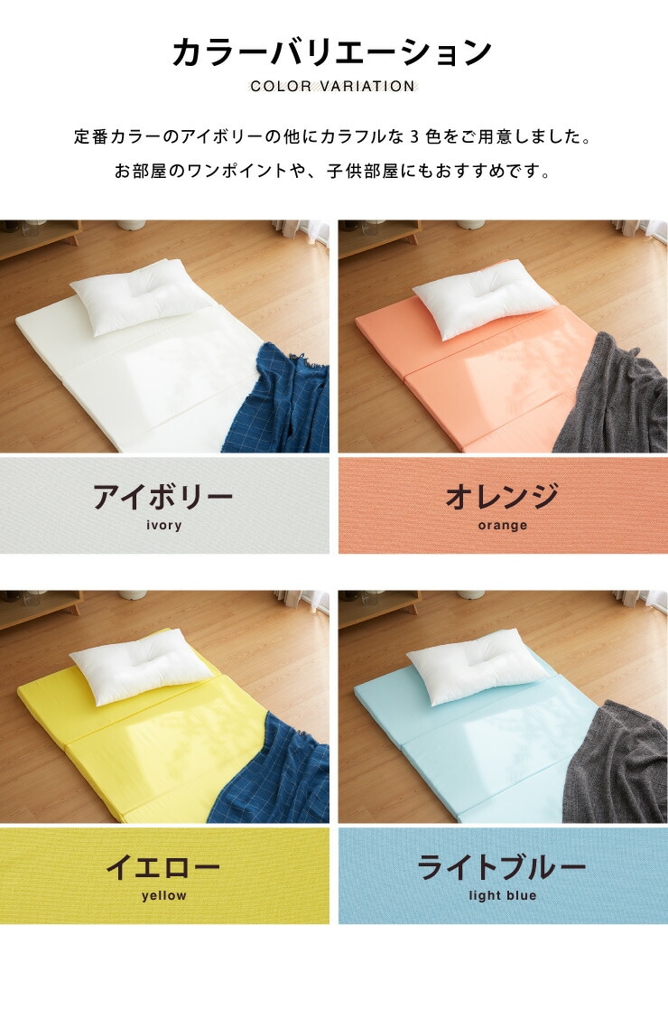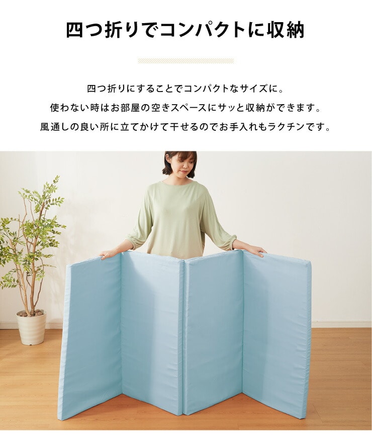 四つ折りタイプのマットレスなので、収納もコンパクトにできます。移動もラクラク。