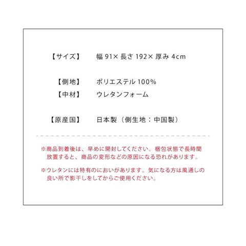使用時:幅91×長さ192×厚さ4(cm)