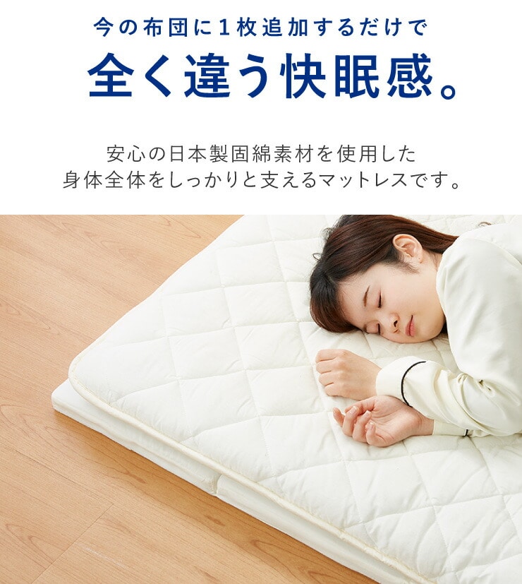 今お使いのマットレスに一枚重ねることで、快適な寝心地を実現します。